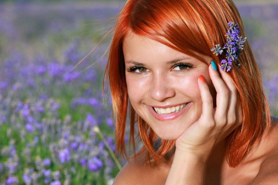 薰衣草田的红发美女
