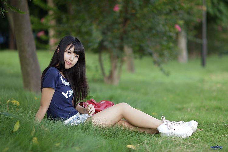 少女留着一头及肩的头发,乌黑亮丽的发色及走路时所带起的波浪,不难看出她的发质是多么的细致柔软。瓜子的脸蛋丝毫没有骨感的突兀,反而是有点丰腴肉肉的。没有戴眼睛,明亮的大眼睛水汪汪的,配上一副又长又翘的睫毛,像是会说话般吸引着别人。白晰的皮肤,不像是一般的乡下姑娘那样晒得比较嘿,反而是像块美玉一样透出光泽,吹弹可破。
