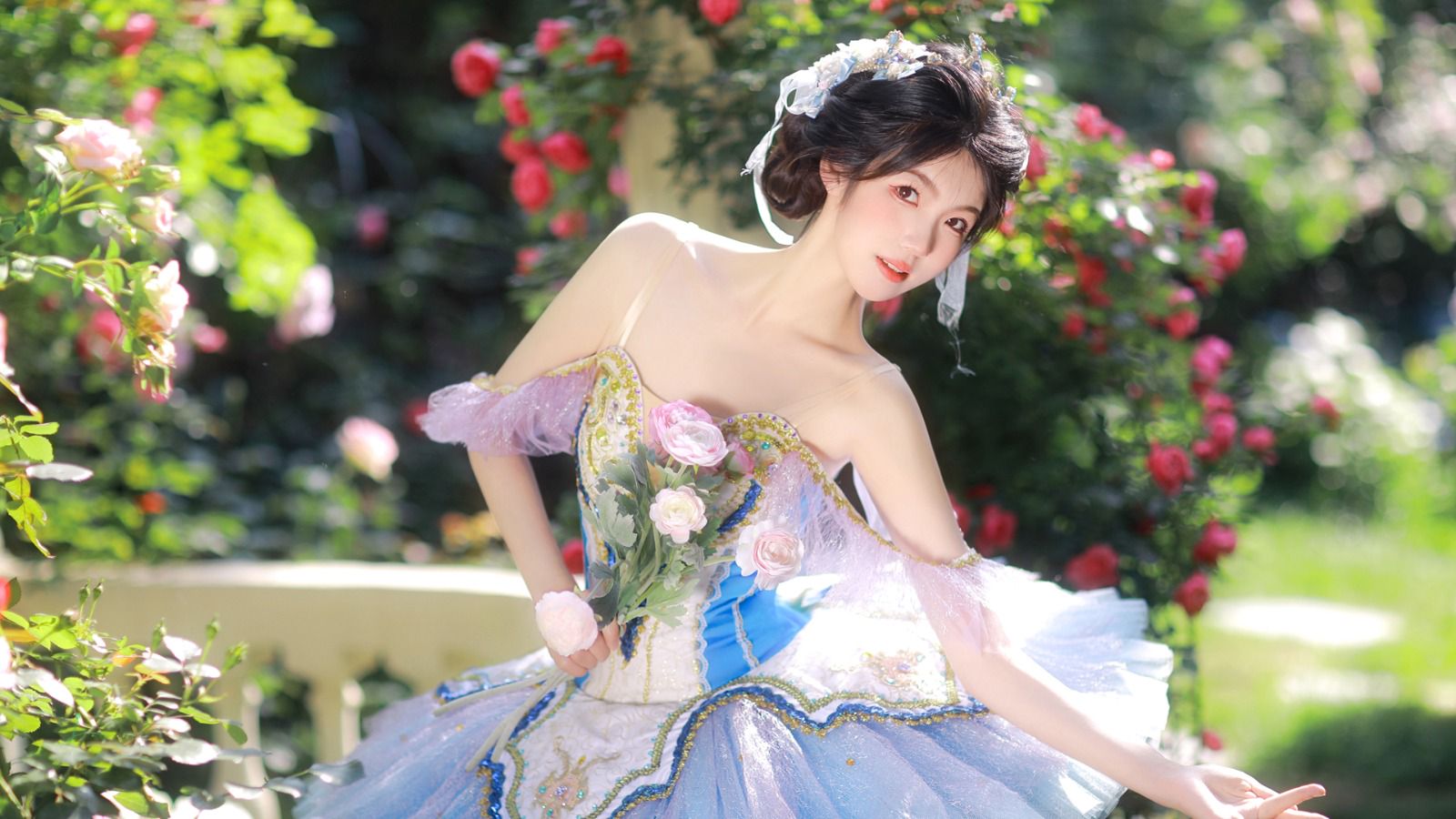 落在那朵沾了露水的花朵上,颤巍巍的花儿,还未完全开放,只等着人将它采撷。