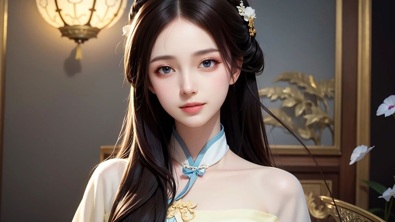 男人古人打扮,穿着曲裾深衣,一头长发犹如黑色瀑布,丝滑地披至腰间。