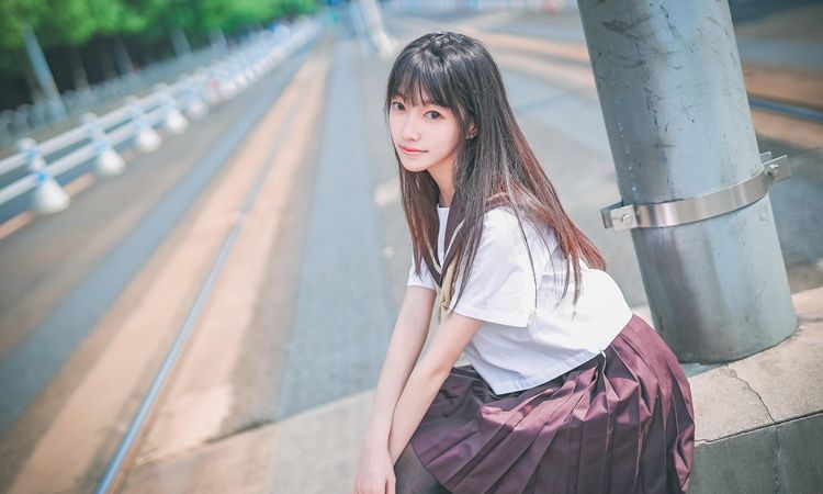 校服的布料原本有些宽大,但随着她的动作,那隐藏在布料下的半截大腿缓缓呈现在眼前。