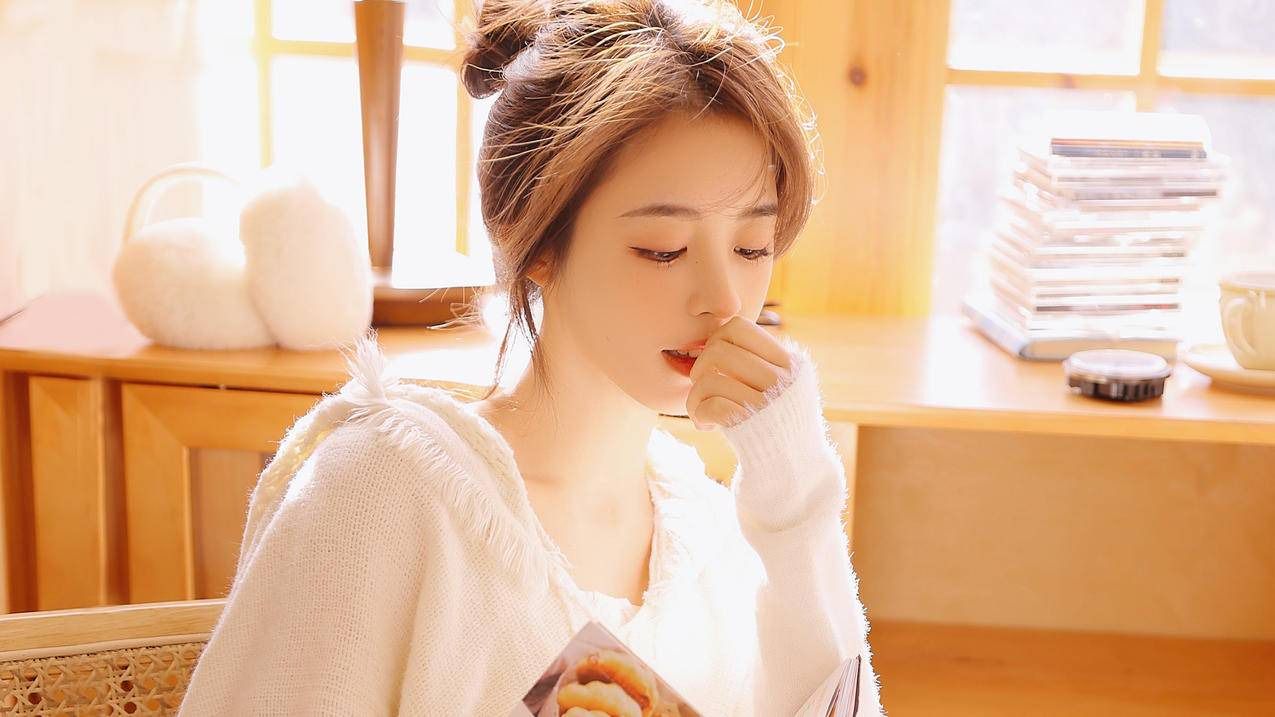 她好像哭过,眼角泛红,脸上有隐约的泪痕。
